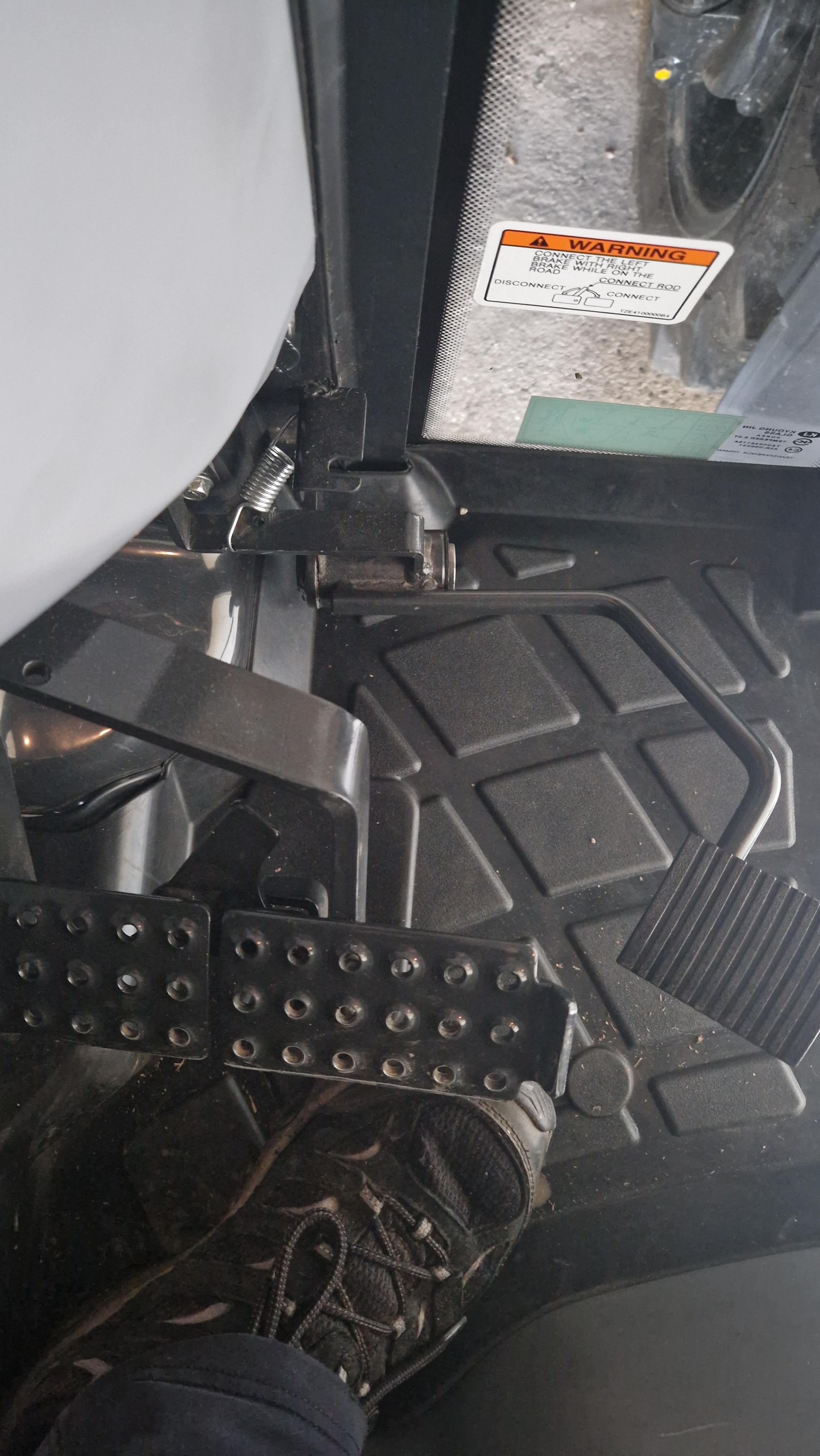 Ich habe mir vor Kurzem einen gebrauchten 6225C, Baujahr 2022, gekauft. Der Traktor ist gut, aber ich habe Probleme mit dem Gaspedal. Die Position und der Winkel erschweren die Dosierung. Mein Schuh klebt entweder am Pedal oder am Boden fest.